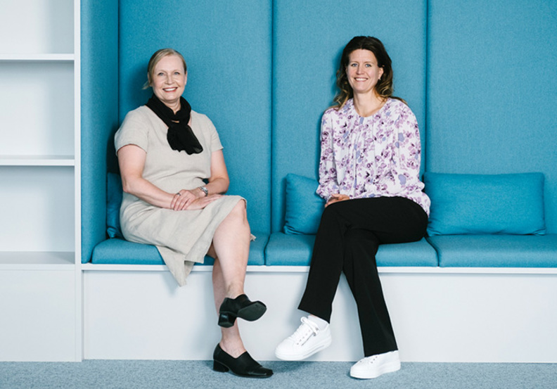 – Kun työkyvyttömyysriskejä seurataan datan kautta, voidaan tehdä vaikuttavia ja oikea-aikaisia toimenpiteitä työkyvyn ylläpitämiseksi ja ennen kaikkea työkyvyttömyysriskin ennaltaehkäisemiseksi, korostavat Varman kehityspäälliköt Johanna Kemppinen (vas.) ja Jaana Ahervuo.