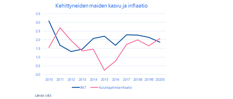 Finanssikriisin jälkeen kehittyneet taloudet ovat kasvaneet pitkään suhteellisen maltillista tahtia ja inflaatio on pysynyt hyvin matalana. Kun talous ei ole kasvanut liian nopeasti eikä talouteen ole kumuloitunut ylikuumenemispaineita, keskuspankit ovat voineet jatkaa hyvin elvyttävää rahapolitiikkaa. Ajoittain tehdyillä lisäelvytyksillä ne ovat varmistaneet, etteivät deflaatiopaineet ja kasvupelot saa yliotetta. Tällainen sijoitusympäristö on edesauttanut vahvojen tuottojen kehitystä niin osake-, yrityslaina- kuin valtionlainamarkkinoiltakin.