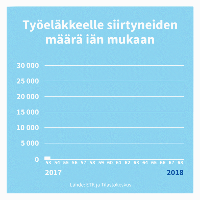Enemmistö suomalaista jää eläkkeelle heti tai melko pian ylitettyään vanhuuseläkkeen alaikärajan. Tämä raja on nousemassa asteittain 63 vuodesta (vuonna 1955 syntyneet) 65 vuoteen (vuonna 1962 syntyneet). Pieni, mutta kasvava vähemmistö konkareista jatkaa palkkatöissä tai yrittäjänä yli 65-vuotiaina. Osa ikääntyneistä tekee ainakin jonkin verran töitä eläkevuosinaan. Osa-aikaeläkkeen tai osittaisen vanhuuseläkkeen aloittaneita ei lueta tässä tilastossa eläkkeelle siirtyneisiin.
