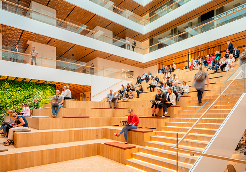 K-Kampuksella työntekijät olivat tärkeässä roolissa uusien tilojen suunnittelussa, ja heidän antamaansa palautteeseen esimerkiksi kalustukseen liittyen reagoidaan nopeasti. Myös talotekniikka joustaa käyttöasteen ja olosuhteiden mukaan. Kuva Minna Kaitajärvi.