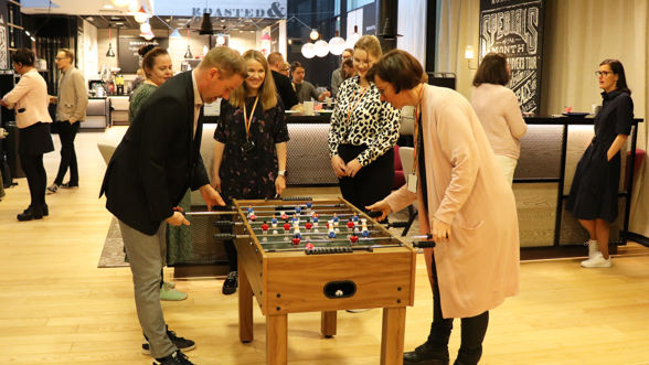 - Toimintojen ajankohtaiskatsauksien lisäksi Toimistopäivissämme on ollut esimerkiksi toimitusjohtajan vetämää strategiateemaista aamupalaa, työelämän monimuotoisuusluentoa ja työpajaa palautekulttuurista. Usein myös hyvä ruoka on tärkeä tekijä houkuttelemassa ihmisiä paikan päälle. Pienilläkin teoilla, kuten vaikka palauteseinän pystyttämisellä tai taukojumpalla saa päivään kivan lisän.