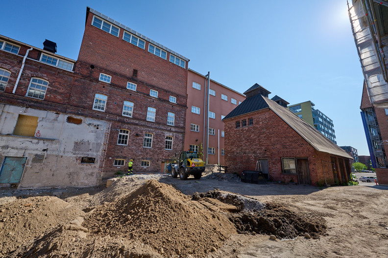 Arabia135-korttelia rakennetaan parhaillaan. Tältä sisäpihalta kulkee töiden valmistuttua yhteys Arabiankadulta Hämeentielle.