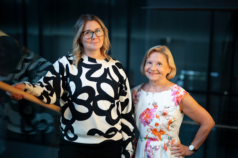 Tokmannin henkilöstö- ja vastuullisuusjohtaja Sirpa Huuskonen (oik.) ja työhyvinvointipäällikkö Heidi Koponen