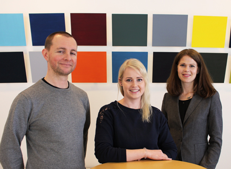 Aki Bergman, Jenni Sarkkinen ja Hanna Haikonen ovat Helmin työkavereita