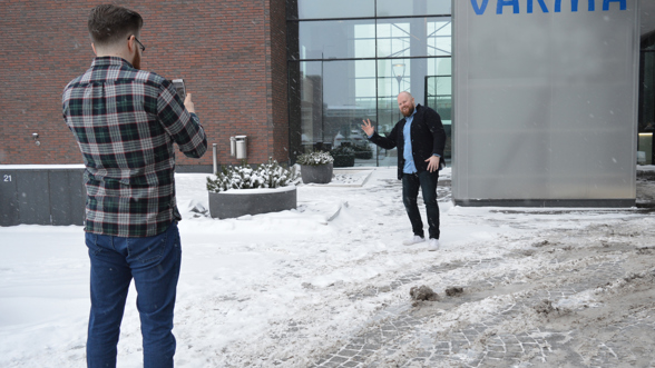 Noin vuosi sitten Varman eläkeasiantuntija Jarno Maukonen sanoi kovaäänisesti työpaikalla, että hänen koirallaankin on enemmän seuraajia kuin Varman Instagram-tilillä. Lausahdus jäi iloiseksi vitsiksi, mutta Jarnon hyvä työkaveri, myöskin eläkeasiantuntuja Mikael Westerlund, muisti nämä sanat ja nosti vuoden lopussa viestinnän järjestämässä roadshow’ssa esille Instagram-tilin. "Saisiko Varman tilin, vaikka vain viikoksi käyttöön?"