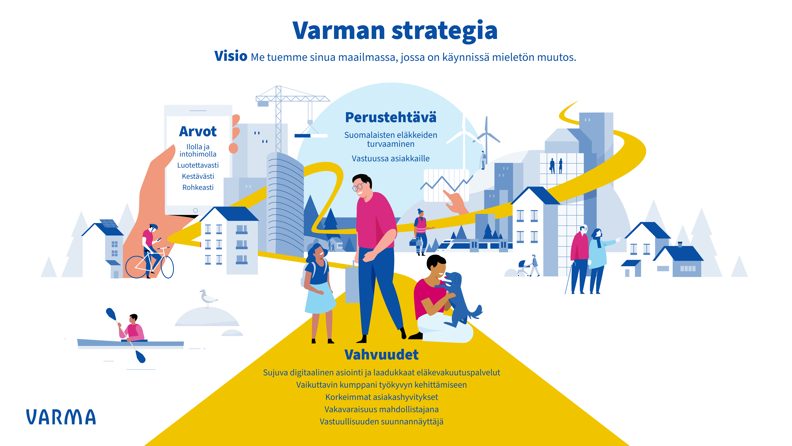 Varman perustehtävä on eläkkeiden turvaaminen. Vastaamme siitä, että asiakkaiden haltuumme uskomat eläkevarat ovat turvassa.
