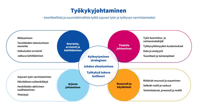 Strateginen työkykyjohtaminen tarkoittaa hyvän työkyvyn nostamista organisaation strategiseksi tavoitteeksi. Se on systemaattista toimintaa, jossa työkyvyn johtaminen on osa organisaation johtamisjärjestelmää ja päivittäistä esihenkilötyötä.