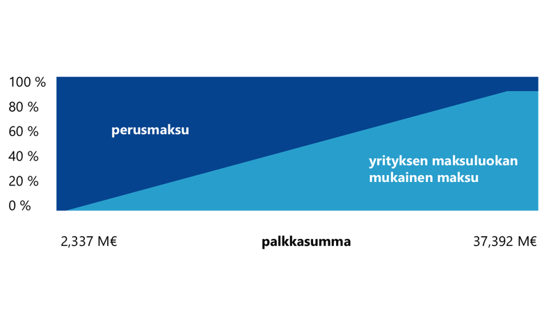 Yrityksesi palkkasumma vaikuttaa siihen, kuinka paljon maksuluokka vaikuttaa TyEL-maksuun. Mitä suurempi palkkasumma on, sitä suurempi on niin kutsuttu omavastuuaste ja sitä kautta vaikutus työkyvyttömyysmaksuun.
